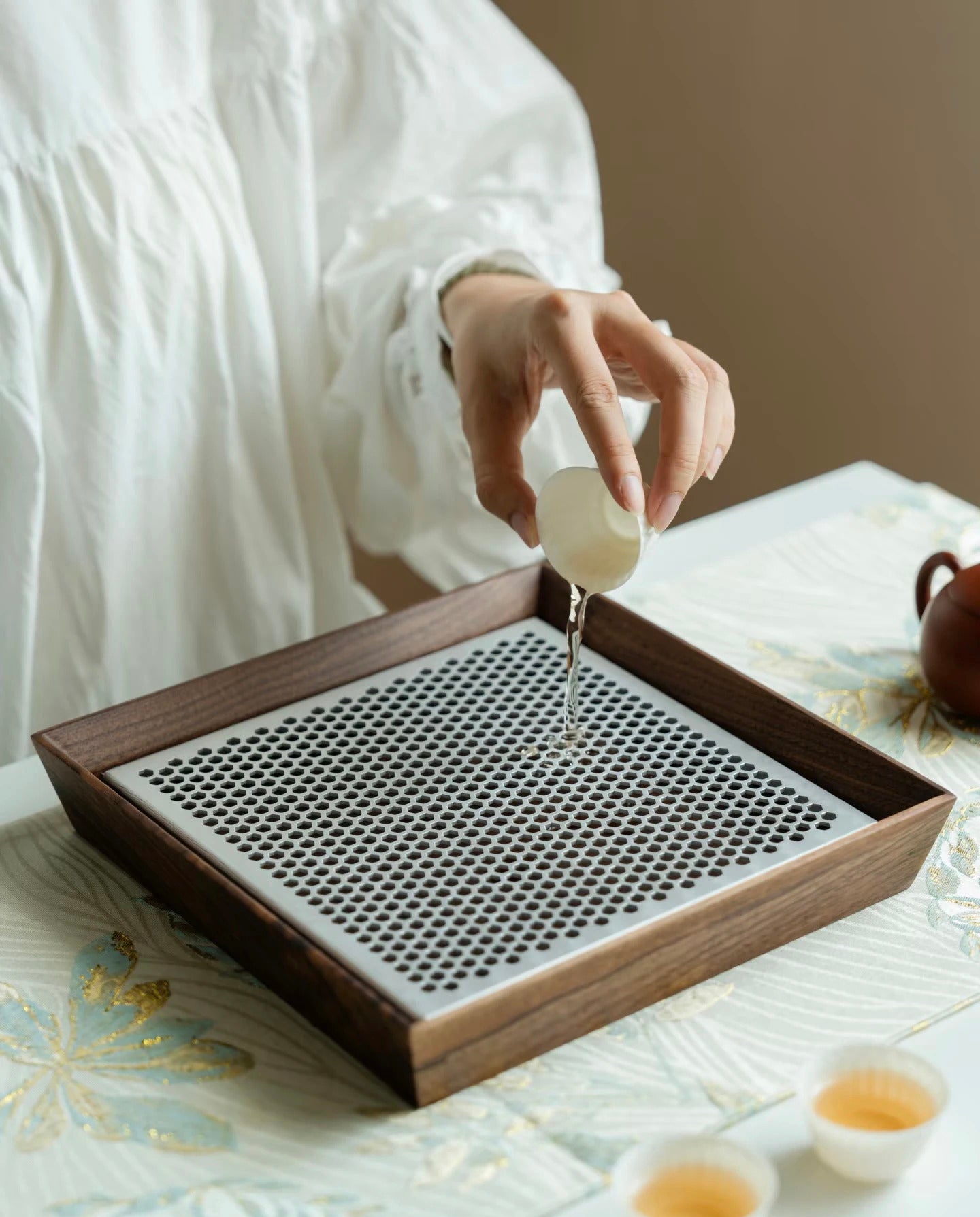 The drainage hole is made of durable aluminum alloy, ensuring efficient filtration during tea brewing.Tea leaves are effectively separated without flowing into the water collection compartment.